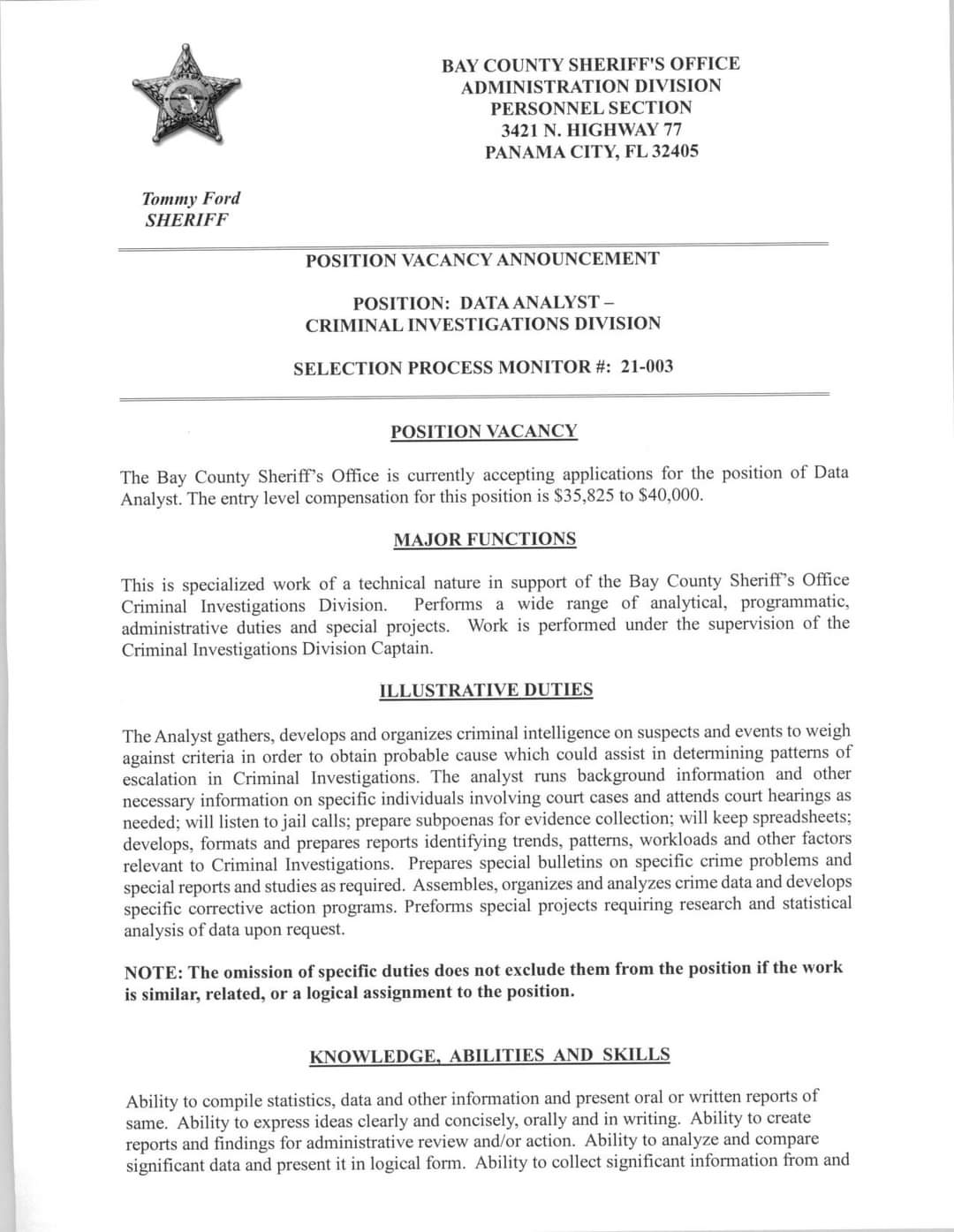 Bay County Sheriff S Workplace Custodian Of Public Data Contact Info
